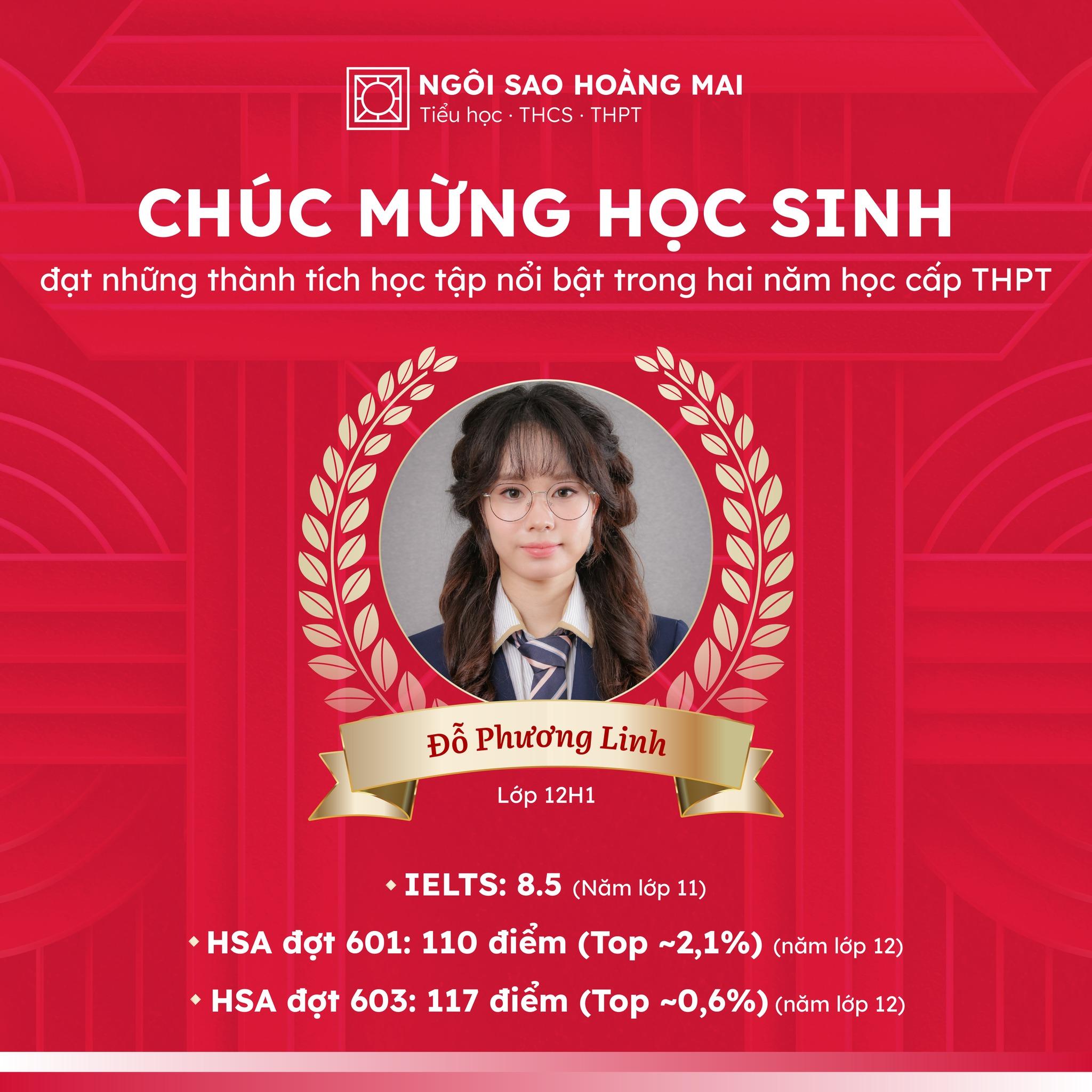 Nhà trường xin chúc mừng bạn Đỗ Phương Linh (lớp 12H1) với những thành tích học tập nổi bật trong hai năm học cấp THPT: