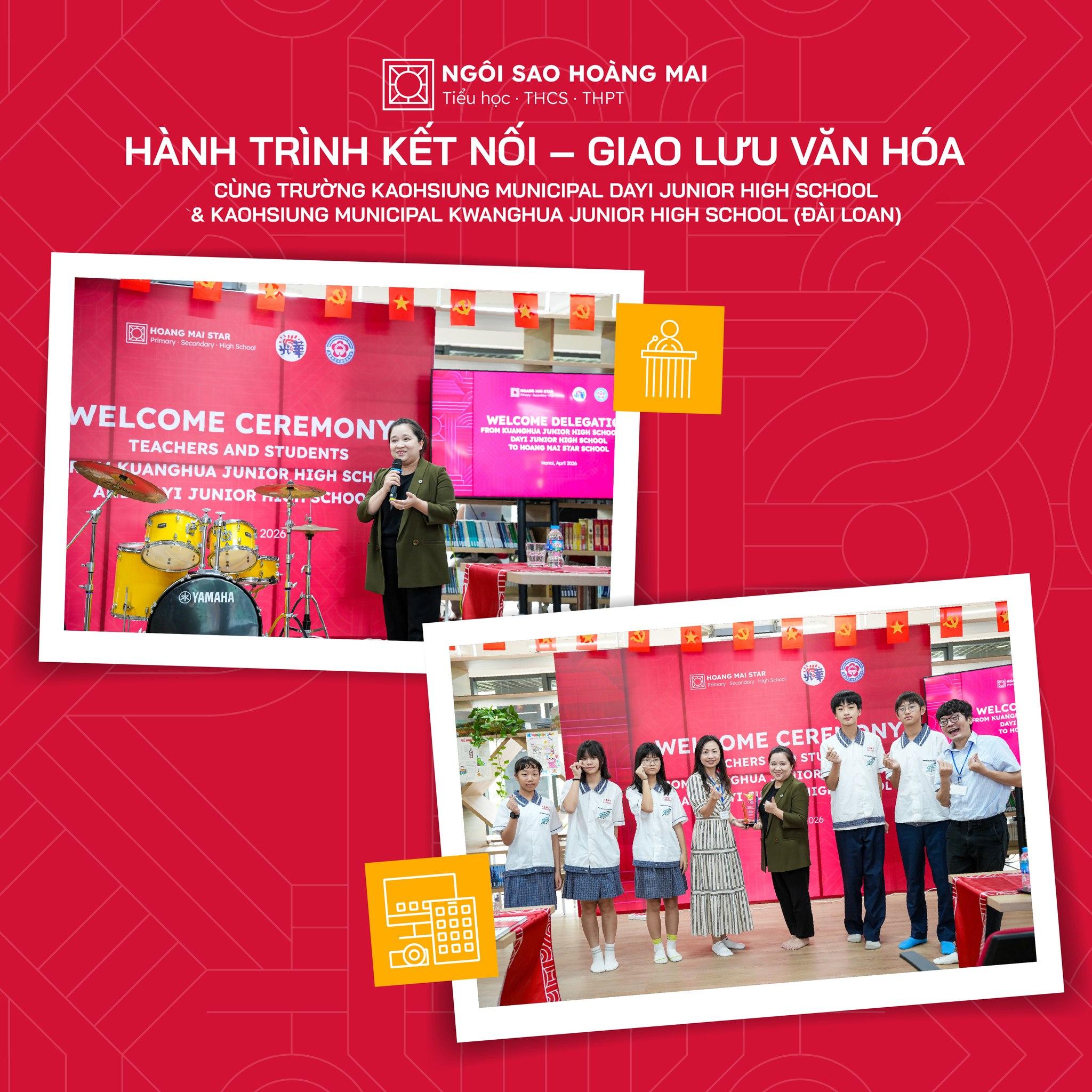📅 Từ ngày 02/04 đến 06/04/2026, Trường Ngôi Sao Hoàng Mai đã hân hoan chào đón đoàn 06 giáo viên và 08 học sinh đến từ 2 trường Kuanghua và Dayi (Đài Loan), cùng nhau viết nên một hành trình 5 ngày giao lưu – trải nghiệm đầy cảm xúc, ý nghĩa và đáng nhớ.